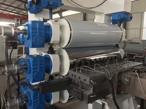 該生產(chǎn)線可連續(xù)擠出生產(chǎn)PP、PE、ABS、PMMA、PC、PS、HIPS單層及多層塑料板材制品。板材寬度在3000mm及以下, 厚度在1-30mm。其制品廣泛應(yīng)用于冰箱、空調(diào)、廣告、建筑、環(huán)保、化工、衛(wèi)浴、汽車內(nèi)飾等領(lǐng)域。