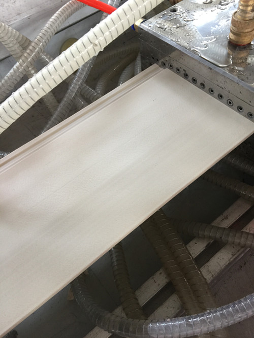 SJMS PVC 木塑型材,PVC型材生產線 該機組由錐形雙螺桿擠出機、模具、真空定型平臺、牽引機、切割機、翻料架等組成。主機采用交流變頻調速,維護簡單,PVC+木粉可用于加工生產建筑隔斷,柜櫥門板、窗臺板、墻裙板、踢腳線、門套線、百葉片、相框、家具封邊條、樓梯扶手、地板、裝飾扣板、塑料門窗異型材、鋁塑復合異型材、裝飾型材等。